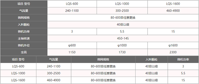 經(jīng)過(guò)對(duì)120-180目輕鈣、300目重鈣、400目活性鈣、300目山楂粉、320-500目鋅粉、500目氧化鐵黑、氧化鐵紅、120-160目中藥粉、180-270目石英粉等物料的篩分使用,測(cè)得每平方米篩網(wǎng)面積每小時(shí)產(chǎn)量均在一噸左右,同時(shí)測(cè)得篩分效率在95%以上,空氣含塵量低于10mg/m3。