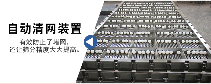 ★自動清網(wǎng)裝置種類較多,自清網(wǎng)效果好;針對分級顆粒度比較接近,分級時有靜電起球且易堵網(wǎng)的物料,我公司專門設(shè)計了先篩細再篩粗的反向(反向篩分)篩分振動篩和搖擺篩,不但有效防止了堵網(wǎng),還讓篩分精度大大提高;