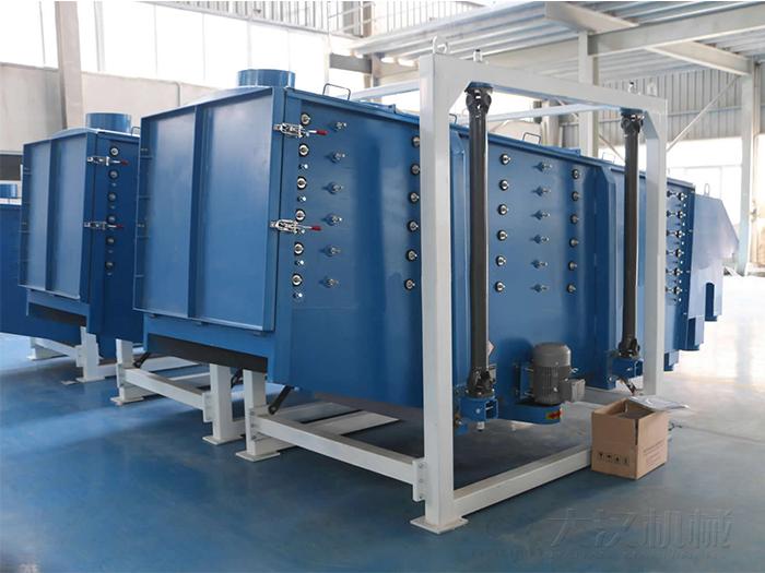 方形搖擺篩的主要結(jié)構(gòu)有:傳動裝置,布料器,篩箱,支撐架,驅(qū)動裝置等。